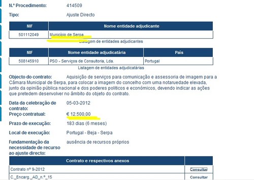 A Câmara Municipal de Serpa não sabe o que fazer ao dinheiro dos contribuintes. Vai daí resolve contratar a PSO. Vão voar 12.500 euros para serviços de comunicação e assessoria de imagem. Sendo assim, para quê ter um Gabinete de Informação, Comunicação e Imagem, se os técnicos superiores não estão suficientemente habilitados “para colocar a imagem do concelho com uma notoriedade elevada junto da opinião pública nacional e dos poderes políticos e económicos.”